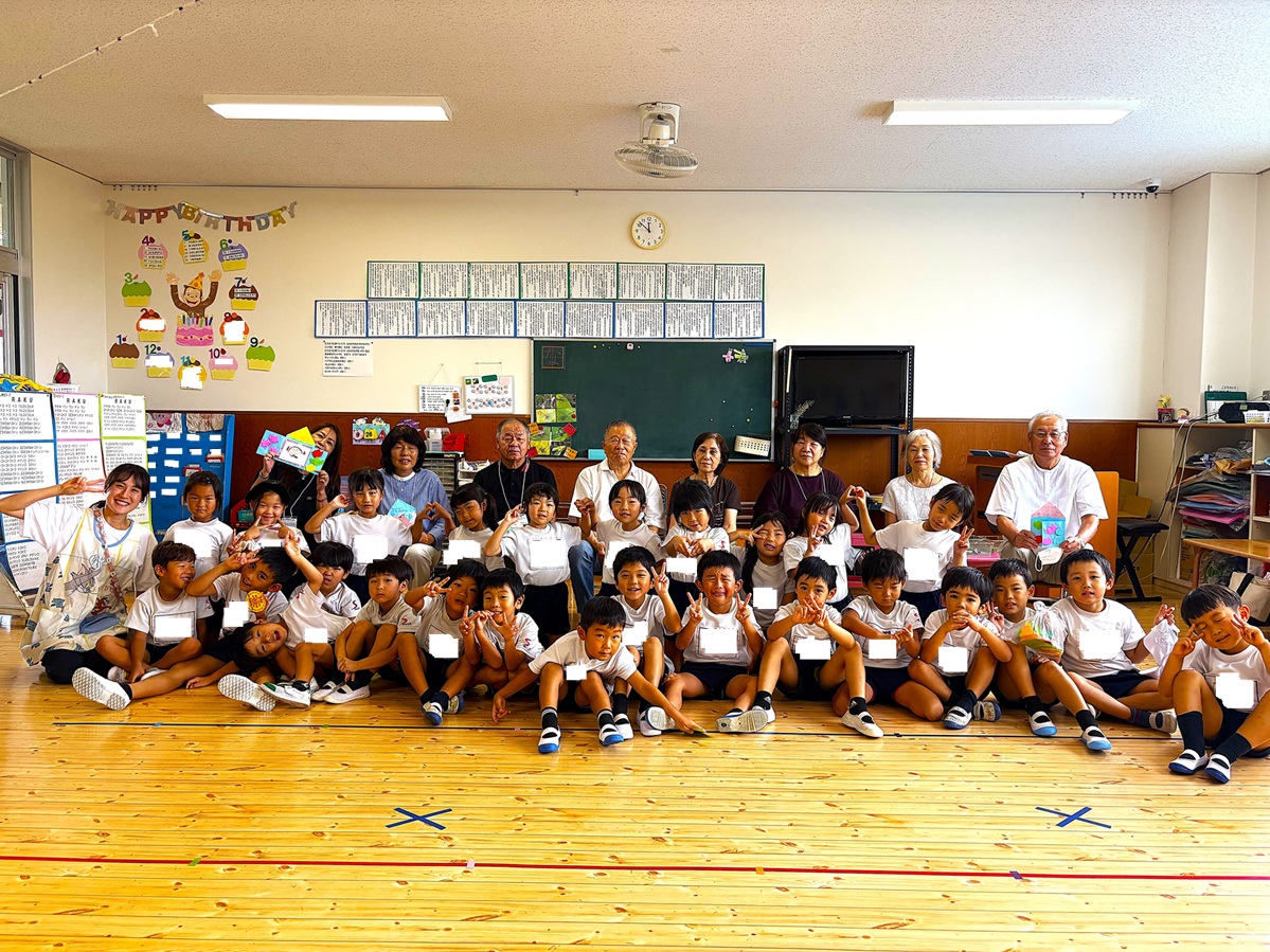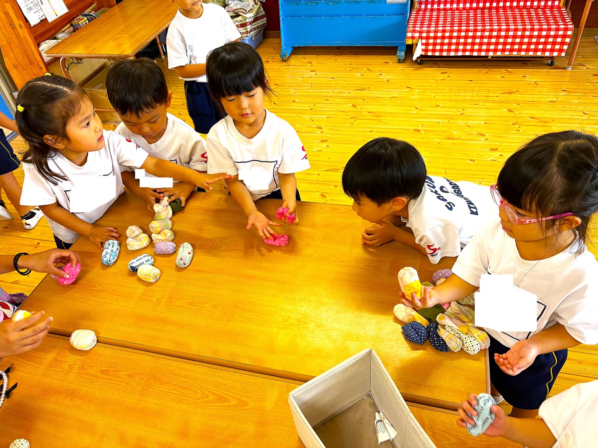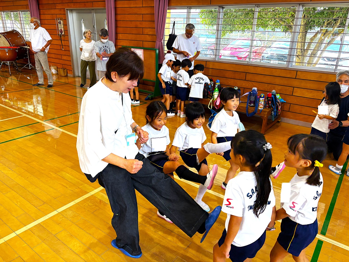 2025.09.29 お知らせ 伝承会 伝承会を行いました! 9月26日に伝承会が行われました。「伝承」とは、古くからあるしきたり・信仰・風習などを後世に伝えていく事を意味します。当日は、年長さんの祖父母の方々にお越し頂き、様々な遊びを教えてもらいました(^^)コマ・けんだま・紙相撲・おはじき・おてだま・ゴム跳び・竹とんぼ・竹馬など、子ども達もたくさんの遊びを夢中になって楽しんでいました! ~伝承会の様子~