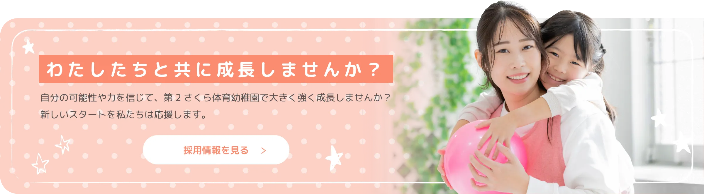 令和8年4月から、第2さくら体育幼稚園は認定こども園となり、幼稚園と保育園が合体した形になります。