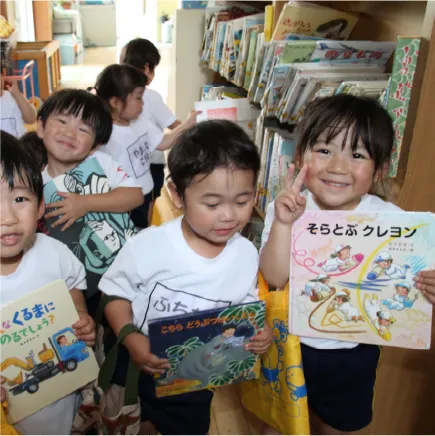 週に1回の絵本貸し出しで、家庭でも文字に親しめます。