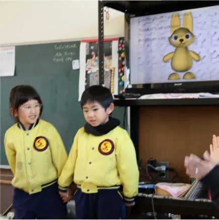 サイバードリームを使用し、毎日10分間、担任の先生と一緒に遊びながら英語の基礎を身につける英語の活動です。楽しみながら色々な英語を覚えます。