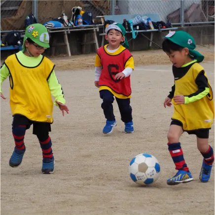 幼稚園児の希望者が週1回、サッカーを中心に活動を行っています。サッカーは県下開催のサッカー大会にも出場しています。年中と年長の希望者が参加しています。夏はプール活動も行います。