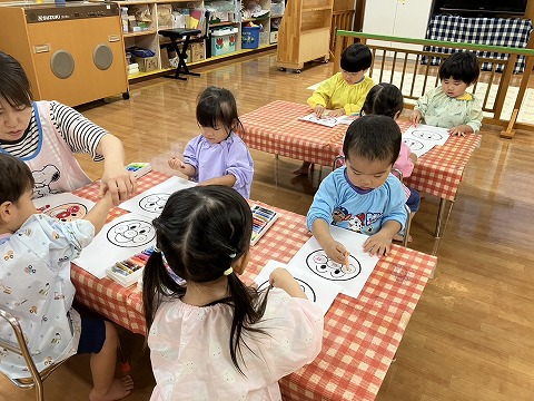 2025.06.17 さくらっこブログ 【保育部】今年度も元気に過ごしています 保育部のお友だちも毎日元気に過ごしています🎵 2歳児ぺんぎん組のお友だちは塗り絵をしました🤗個性あふれるアンパンマンが出来ましたね! 1歳児こあら組、0歳児らっこ組のお友だちは体操をしました🎵先生の真似をして体を動かすことが出来ました😄