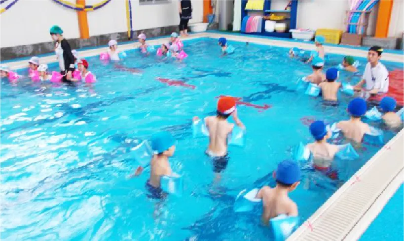 温水プールを完備。天候や気温に左右されることなく活動が行えます。