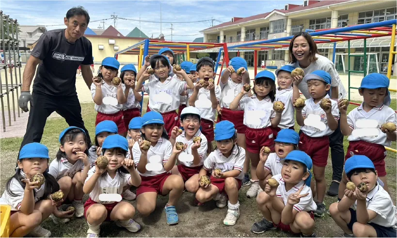 子供たちが種まきや成長観察・収穫を体験できる菜園。