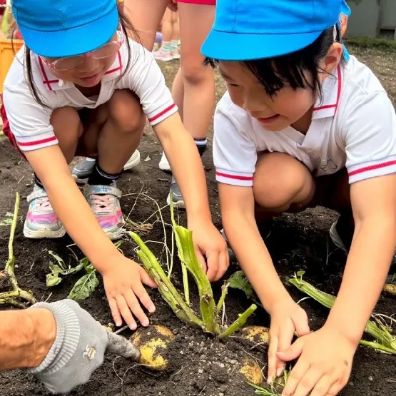 幼稚園には畑もあり、夏野菜(キュウリ、トマトなど)、