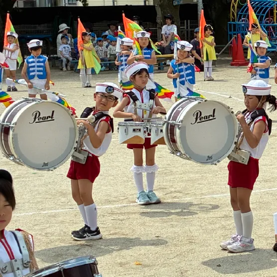 - 5歳 運動会でマーチングを披露みんなで心を一つにして演奏、演技をします