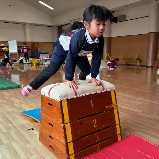 跳び箱・鉄棒・プールなど、全員で楽しく活動できる指導をしています。